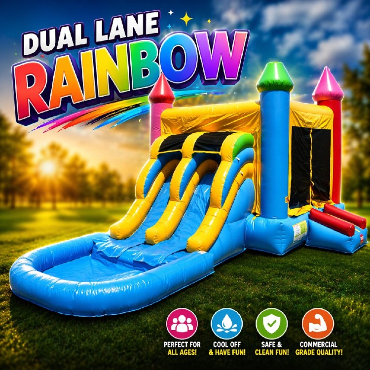 Dual Lane Rainbow Castle Combo (Wet/Dry)