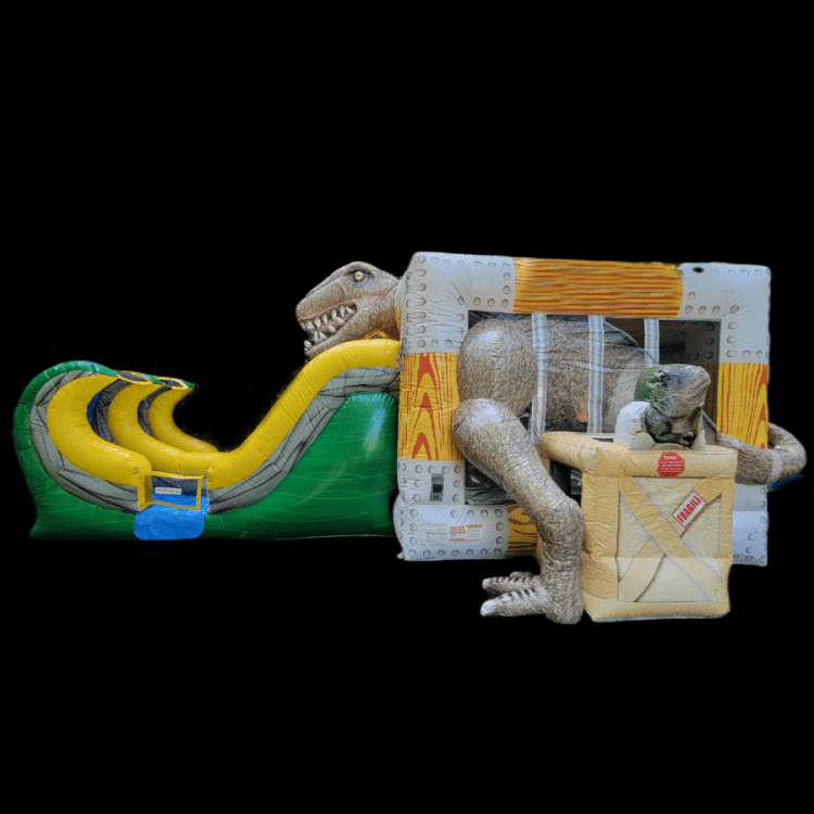 Bring a prehistoric blast of fun to your event with the Jurassic Rebound Combo! This vibrant dinosaur-themed inflatable features a spacious bounce area, dual slides, and the ability to run wet or dry, making it perfect for birthday parties, school events, festivals, family reunions, and summer celebrations. Add a Dart Panel for even more interactive fun.
