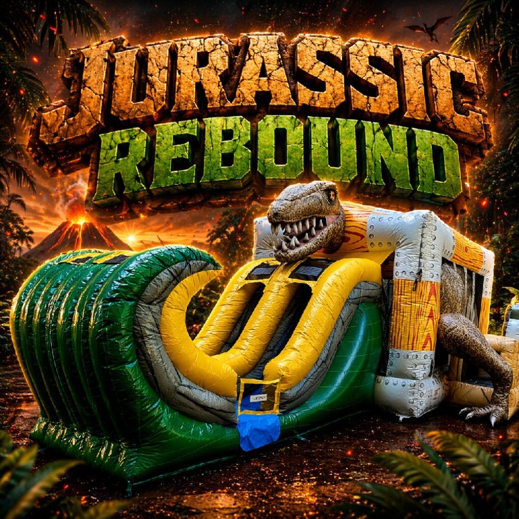 Bring prehistoric excitement to your event with the Jurassic Rebound Combo—a dinosaur-themed inflatable packed with bouncing, climbing, and dual-lane sliding fun.