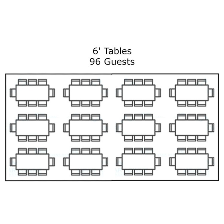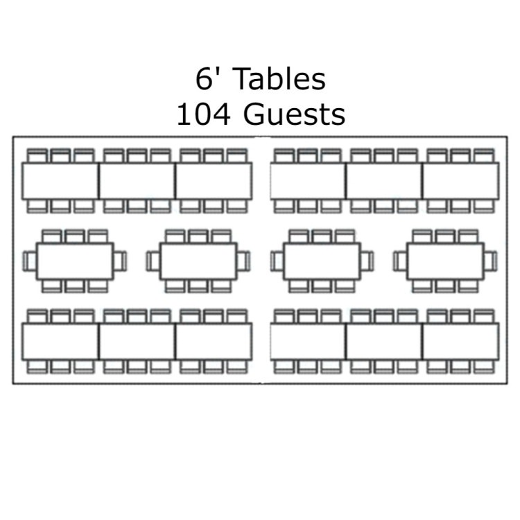 • Seats 104 guests with 16 6 ft Banquet Tables