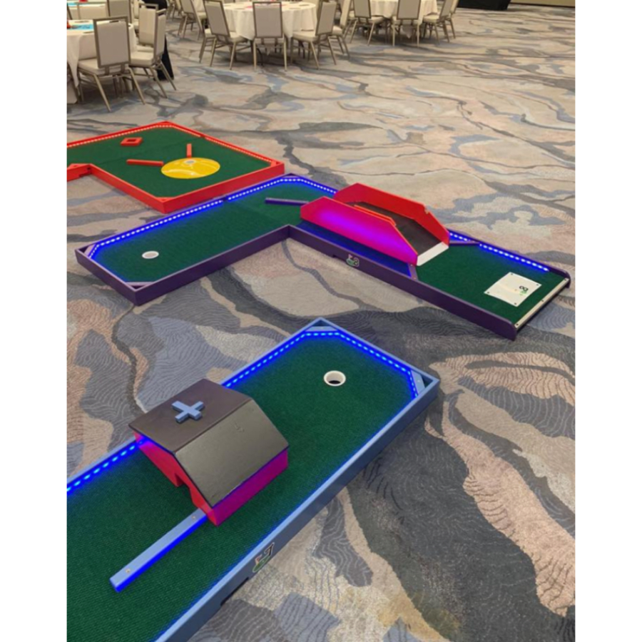 Take your event to the next level with our 9-Hole LED Mini Golf course! Sometimes referred to as "putt putt golf," this vibrant setup offers a full course of glowing fun, making it perfect for any occasion.