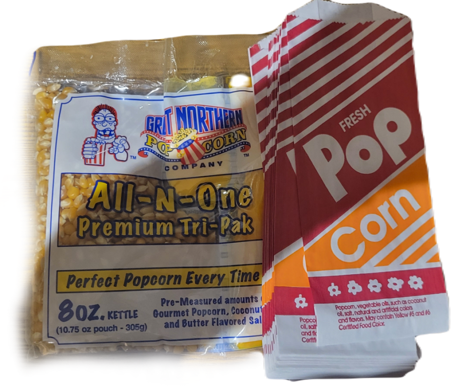 Need extra Popcorn for your party or event. Our prepackaged Kernels with oil and butter salt makes it easy. Add this as an extra to your Popcorn Machine.