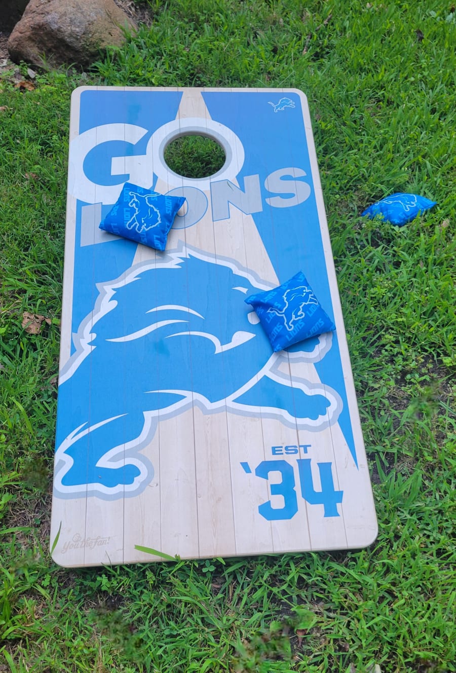 Team Spirit Fun: Featuring the iconic Detroit Lions branding, this corn hole set is perfect for fans!
